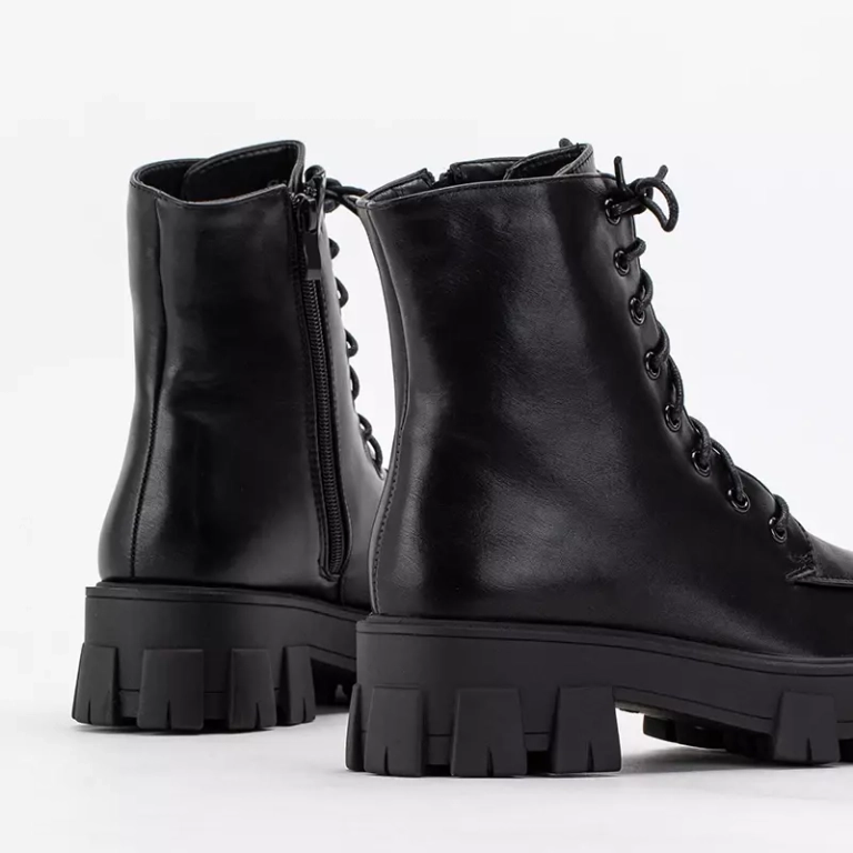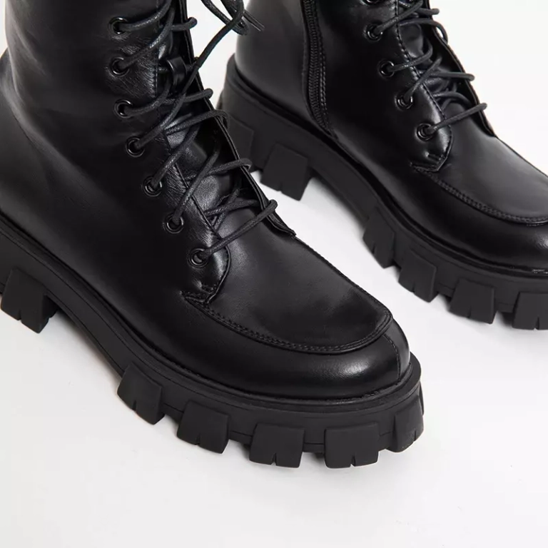 • Klasické dámske čižmy na plochých podpätkoch. Zvršok je vyrobený z ekologickej kože, vnútro topánok má podšívku v podobe kožušiny. Poznámka: výrobok má na materiáli stopy lepidla.