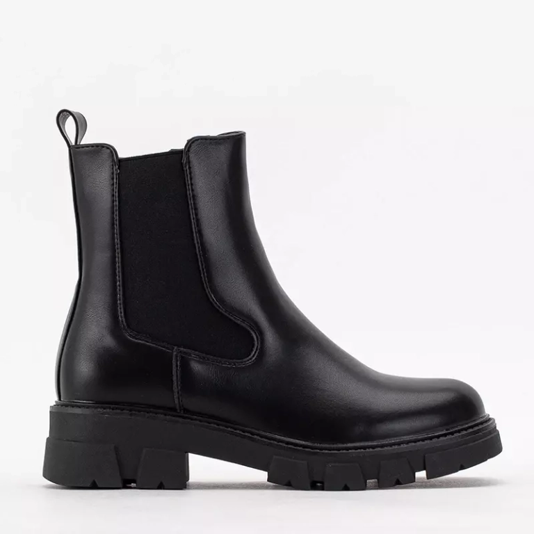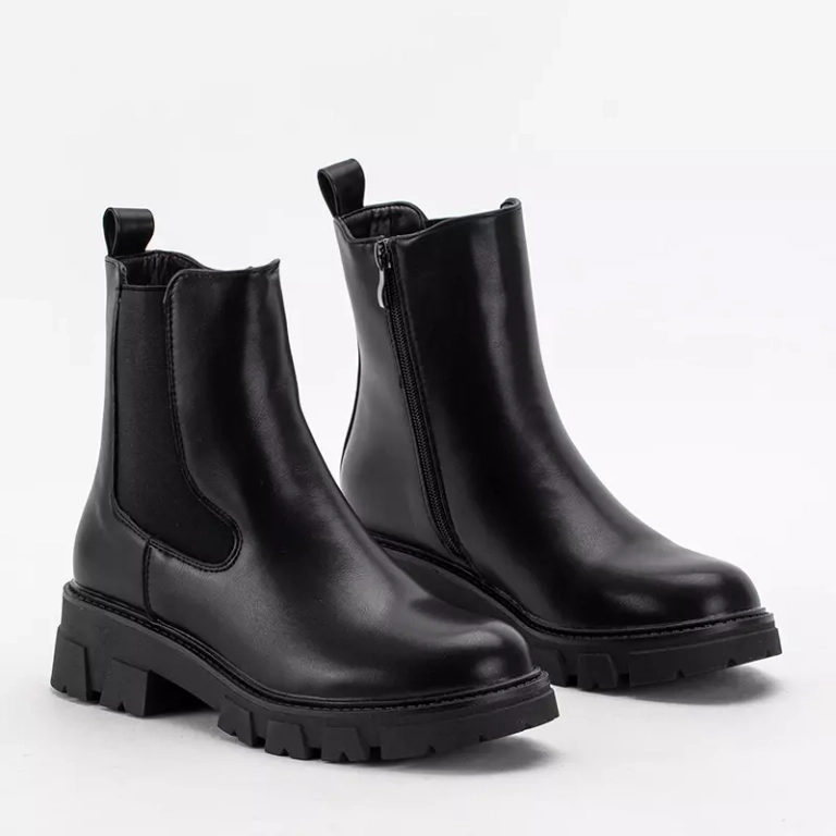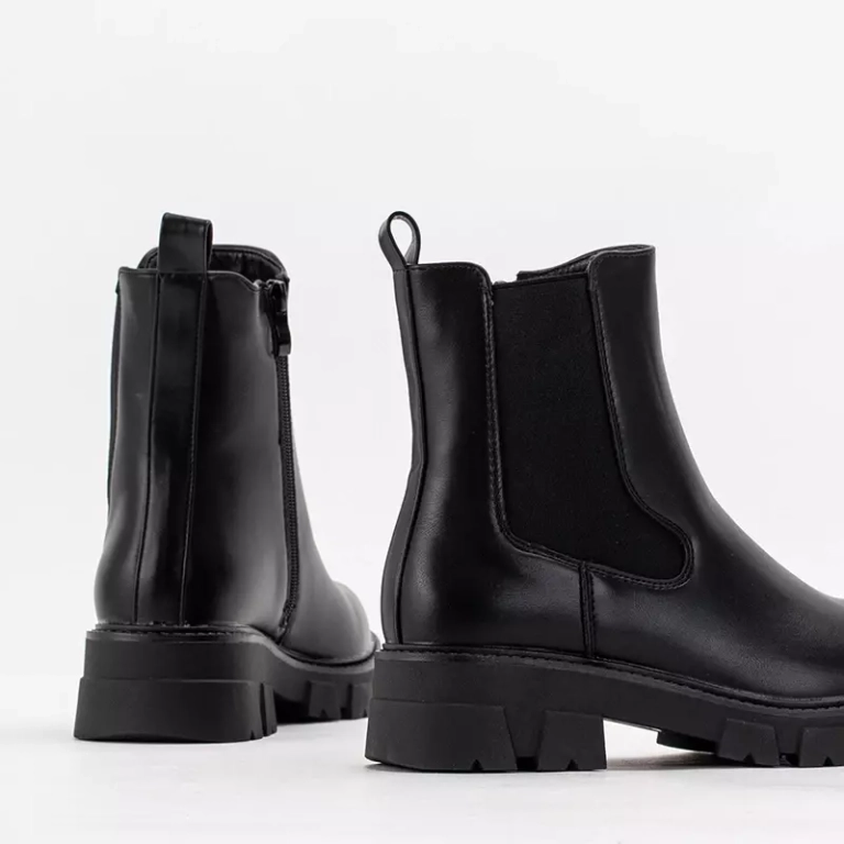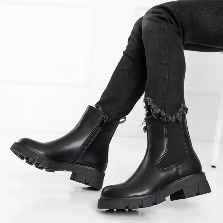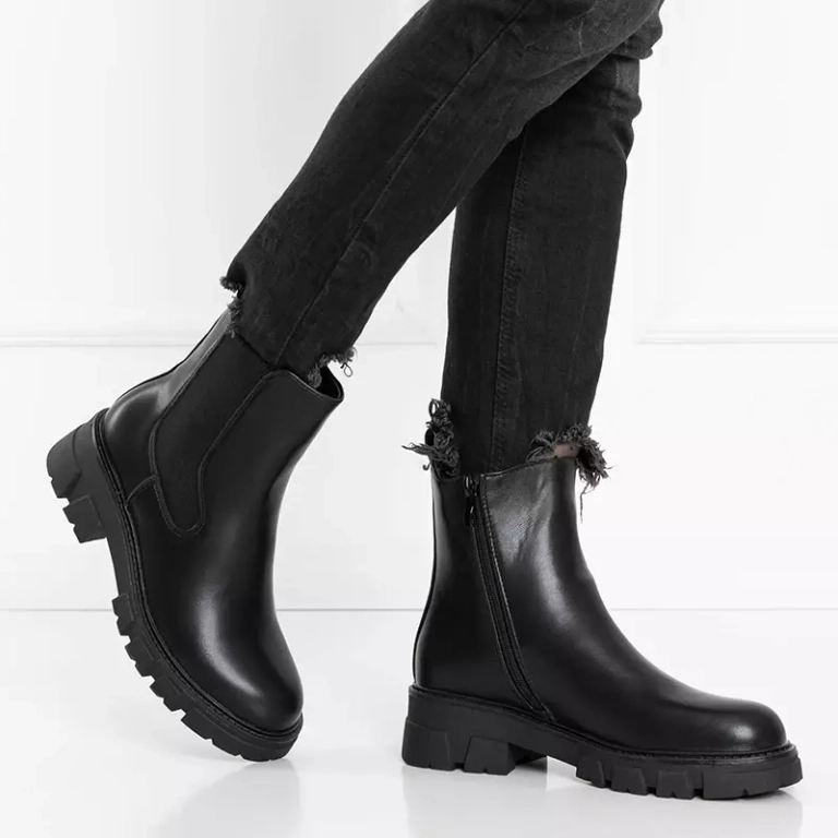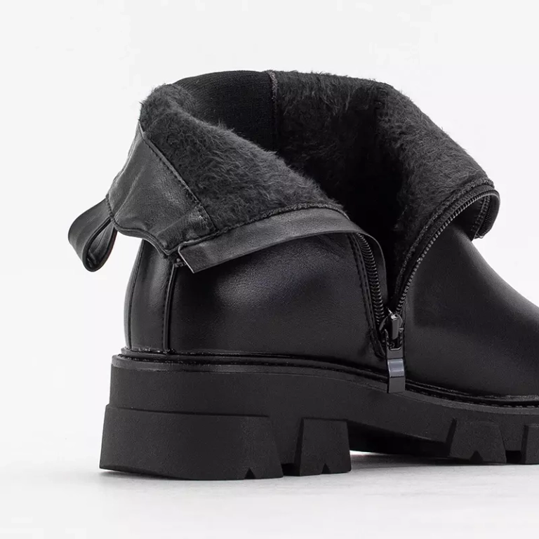 - Čierne dámske čižmy so zvrškom siahajúcim po členky vyrobené z ekologickej kože. Vnútro topánky je zateplené kožúškom, zips na boku, gumená podrážka. Ideálne k širokým mom džínsom! Poznámka: Produkt má zlomený materiál.