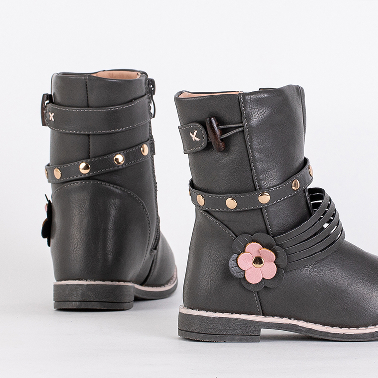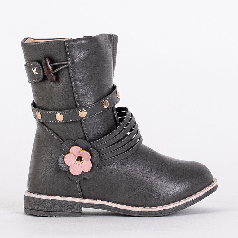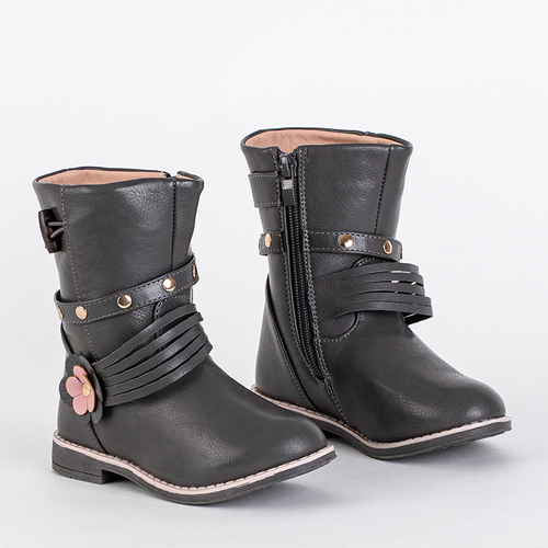 Detské šedé čižmy s eko kožou Kissi - Obuv