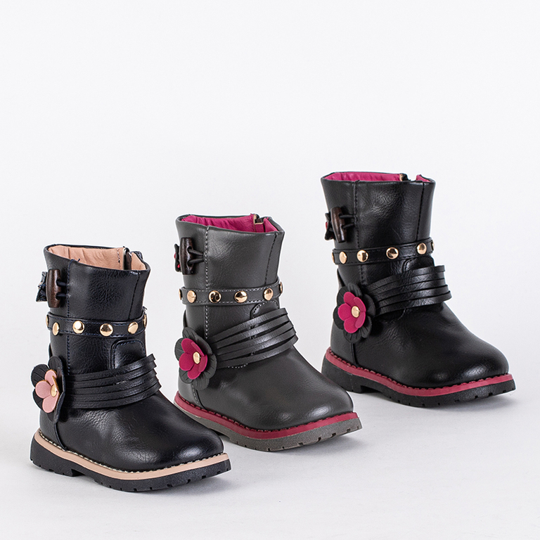 • Detské čižmy vyrobené z ekologickej kože. Zateplené teplým ovčím kabátom, na zips. Ozdobný zvršok im dodáva dievčenský šarm!
