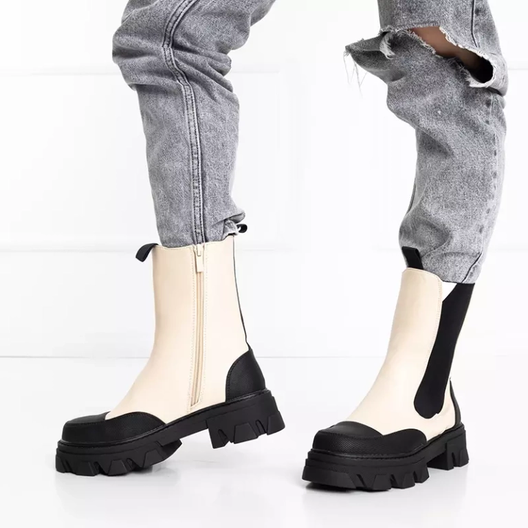 OUTLET Béžové dámske čižmy na masívnej podrážke Rosidi - Obuv