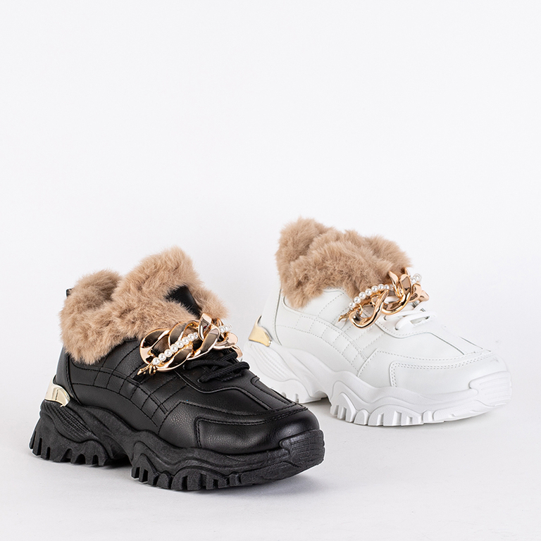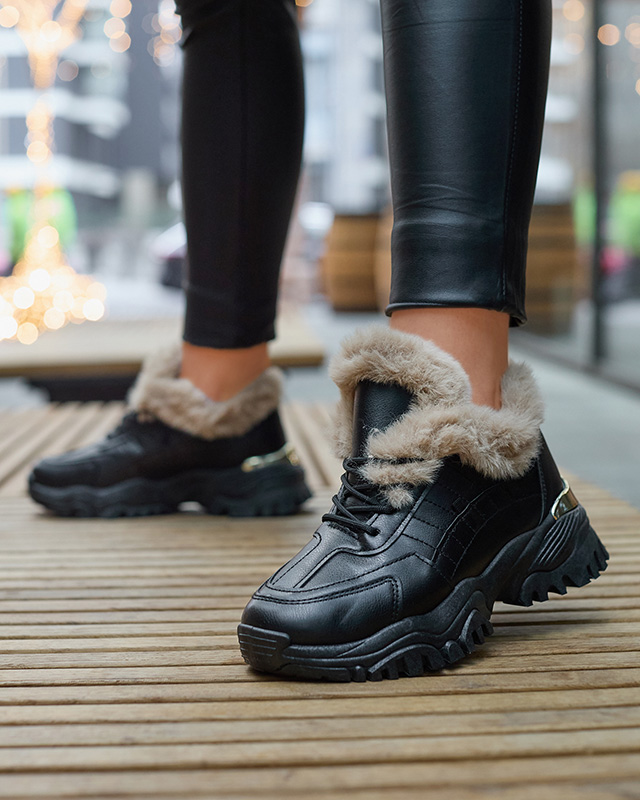 • Športová obuv pre ženy s hrubou podrážkou. Zvršok na šnurovanie z eko kože. Vnútro je plne zateplené kožušinou. Ideálne k športovým outfitom!