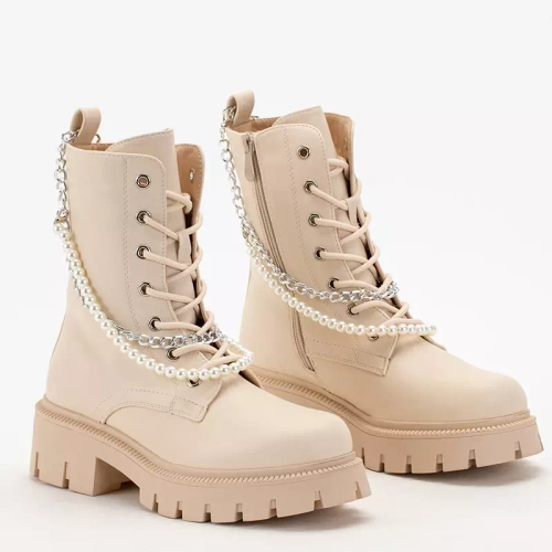 OUTLET Krémové dámske tašky s retiazkou a perličkami Agsiva - Obuv