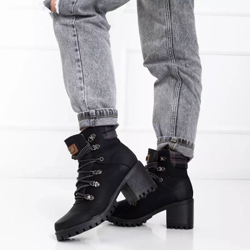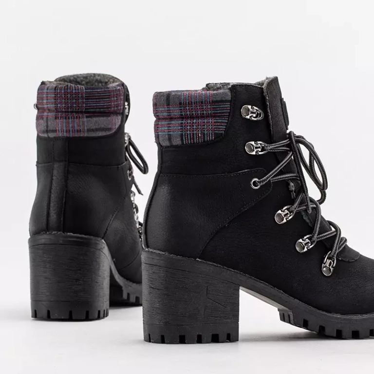 - Dámske členkové čižmy na gumovom podpätku typu post, vyrobené z ekologickej kože. Model na šnurovanie, vystlaný ovčou kožou. Skvelý doplnok k šatám a svetríku! Poznámka: Produkt má škrabance na materiáli.