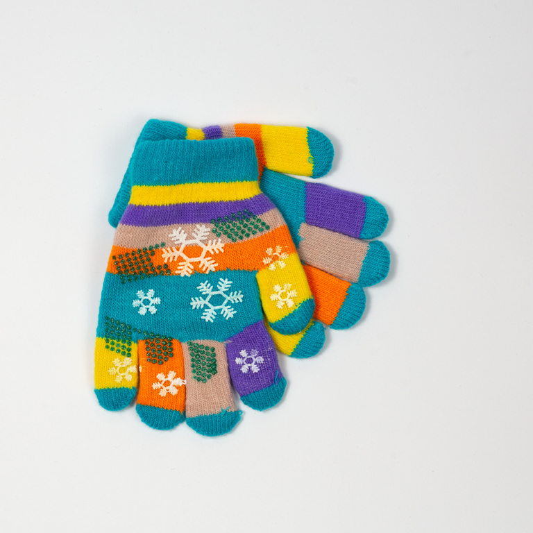 - Dievčenské rukavice z mäkkého, príjemného materiálu! Model je zdobený trblietkami, farebnými vsadkami a potlačou snehových vločiek. Ideálne na prechádzky v chladnejších dňoch!