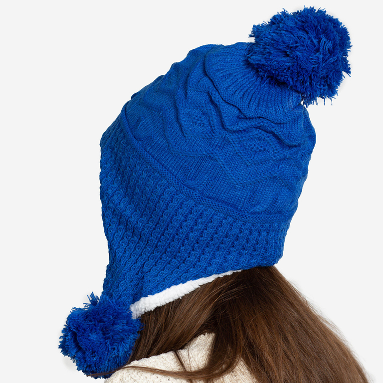 Dámsky kobaltový zateplený klobúk s brmbolcami - Doplnky