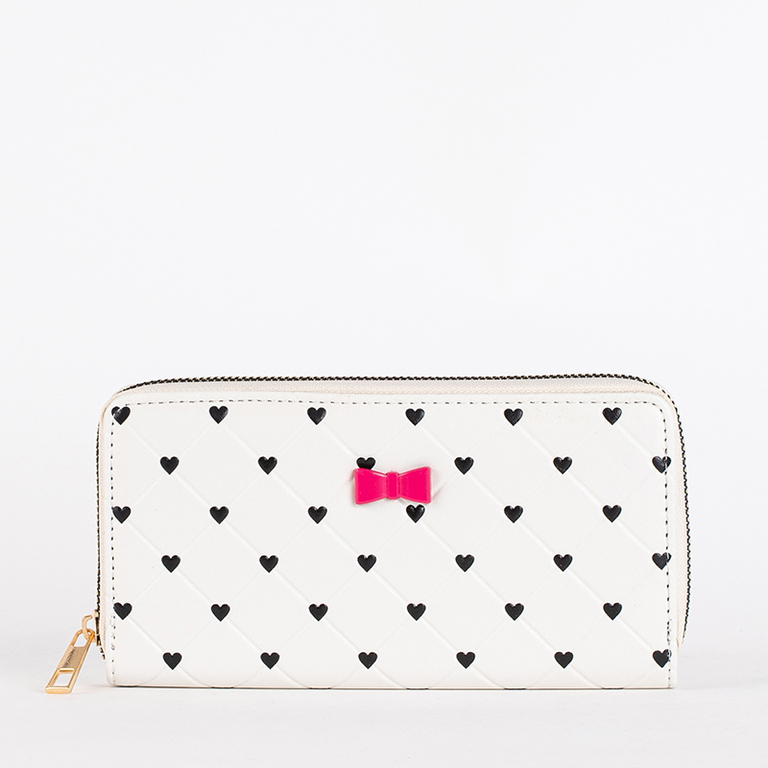 Dámska biela veľká peňaženka so srdiečkami - Doplnky