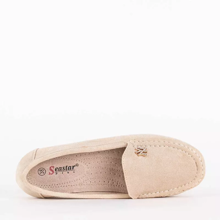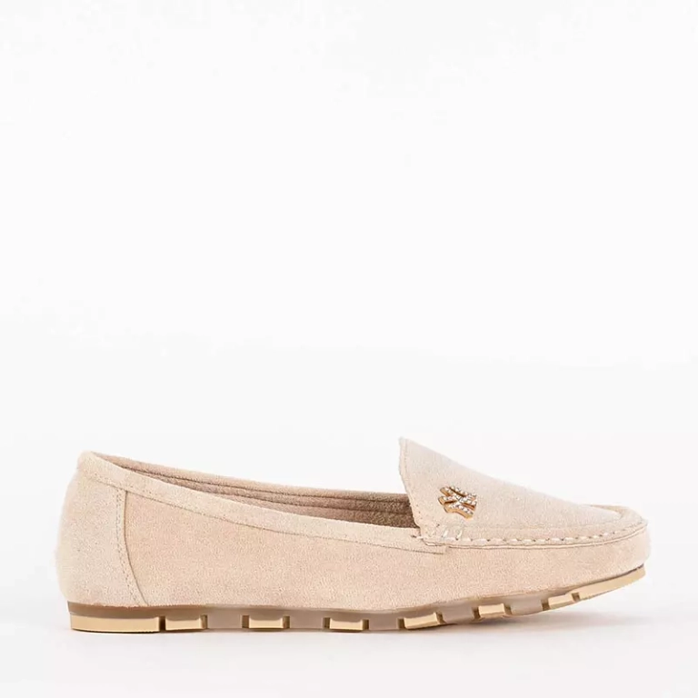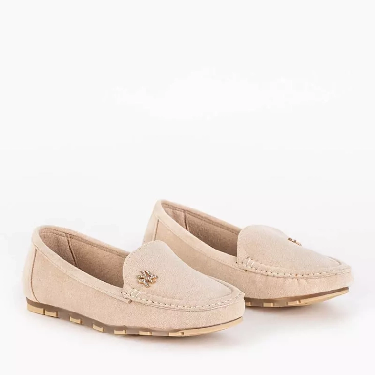 OUTLET Dámske béžové mokasíny z eko semišu s ozdobou Pixila - Obuv