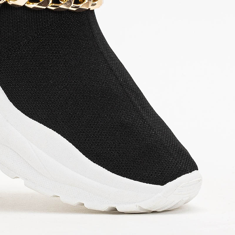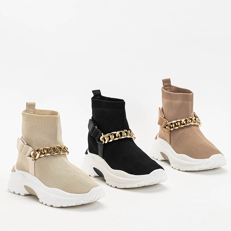 - Pohodlná dámska športová obuv s gumenou podrážkou, vysokým zvrškom. Zvršok a stielka sú vyrobené z látkového materiálu, slip-on model. Model zdobí zlatá retiazka a zapínanie na členku na suchý zips. Na prechádzky bude ako stvorená!