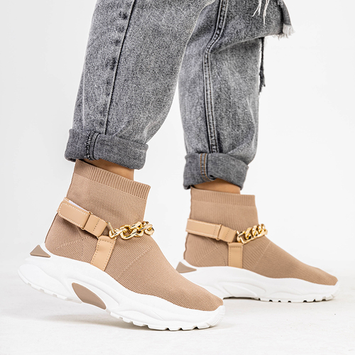 - Pohodlná dámska športová obuv s gumenou podrážkou, vysokým zvrškom. Zvršok a stielka sú vyrobené z látkového materiálu, slip-on model. Model zdobí zlatá retiazka a zapínanie na členku na suchý zips. Na prechádzky bude ako stvorená!