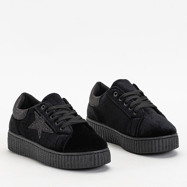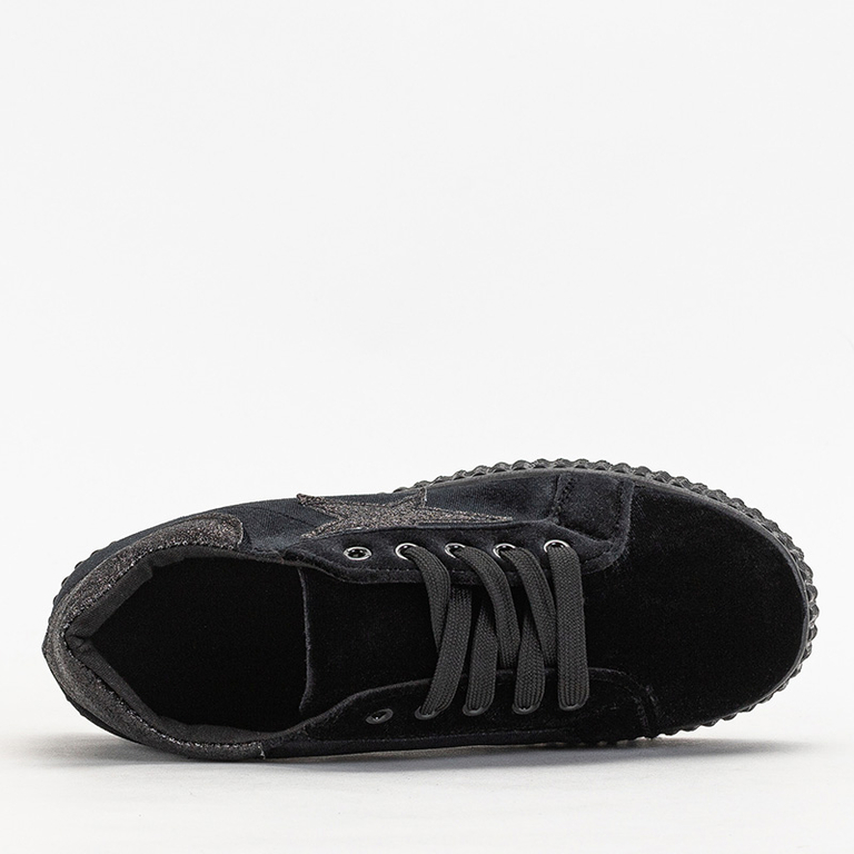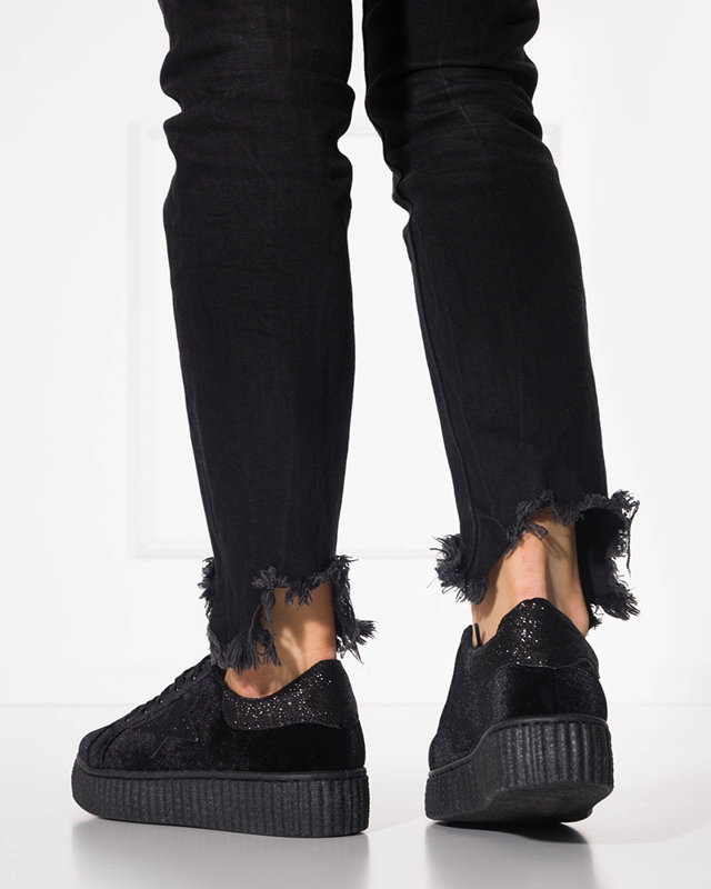 - Ležérna dámska športová obuv v štýle tenisiek, vyrobená z materiálu a la velur. Zvršok má trblietavé vsadky a stred topánok je podšitý látkou. Ľahké a pohodlné topánky na každý deň!