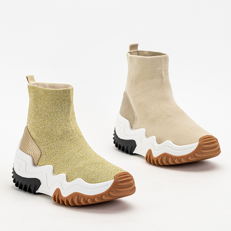 Zlaté dámske trblietavé vysoké tenisky Tenera - obuv