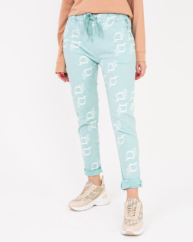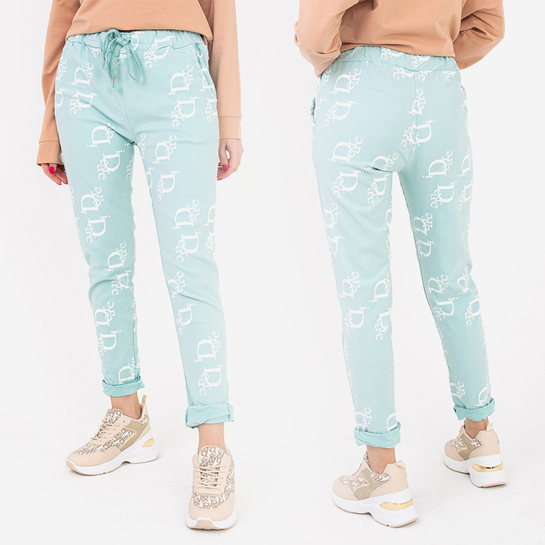 Dámske nohavice z mätovej látky s nápismi - Oblečenie