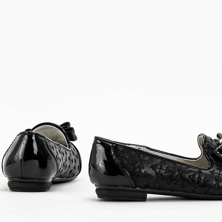 Čierne dievčenské balerínky s výšivkou a mašľou Olije - Topánky