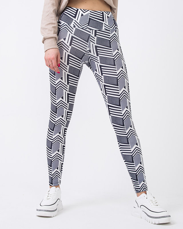 Vzorované dámske čierno-biele legíny s vysokým pásom - Oblečenie