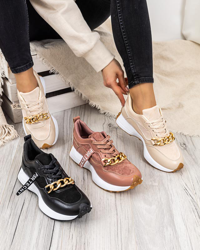 - Mega štýlová dámska neformálna športová obuv, zdobená kovovou retiazkou a nápismi. Zvršok je vyrobený z kombinácie ekologickej kože a ekologickej jelenice. Vnútro je podšité látkovým materiálom. Ideálny základ pre každý deň!