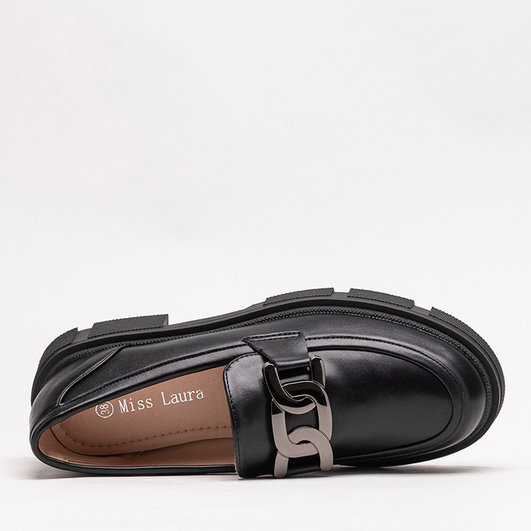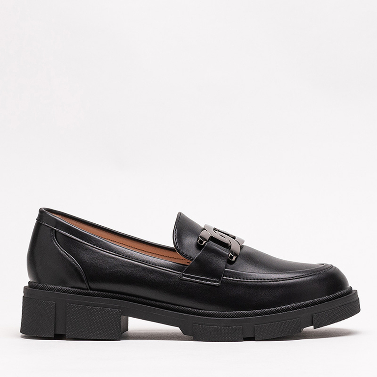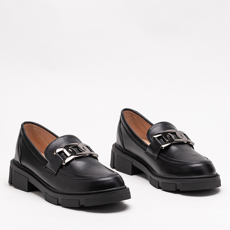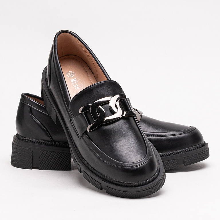 - Najmódnejšie dámske topánky s hrubou podrážkou tejto sezóny. Zvršok a stielka sú vyrobené z ekologickej kože. Špička je ozdobená plastovou retiazkou. Perfektná obuv na každodenné nosenie.