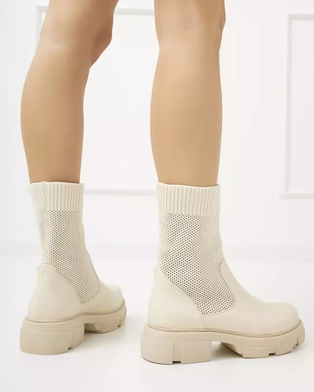 OUTLET Dámske béžové ažúrové členkové čižmy Roibu - Obuv