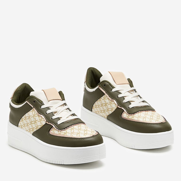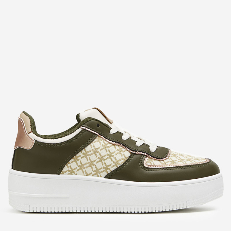 - Dámske športové topánky vyrobené z ekokože. Zvršok na šnurovanie, zdobený potlačou. Podšívka je látková. Model má pohodlnú hrubšiu podrážku. Perfektné topánky na každodenné nosenie.
