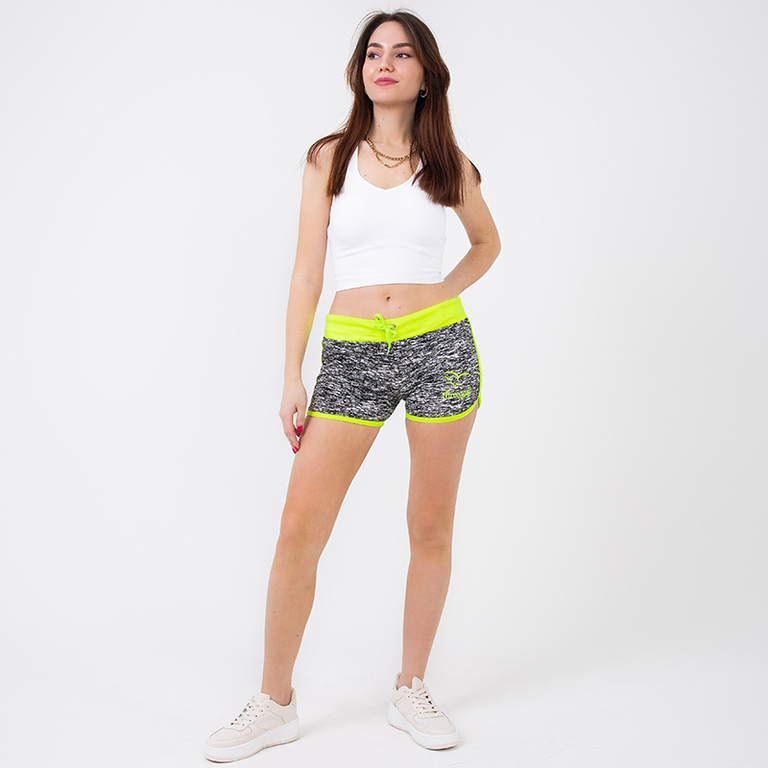 Neónovo žlté a čierne dámske športové šortky - oblečenie