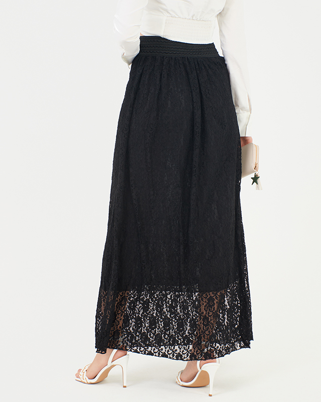 Čierna dámska čipkovaná midi sukňa - Oblečenie