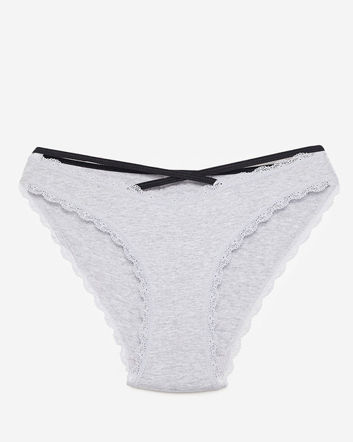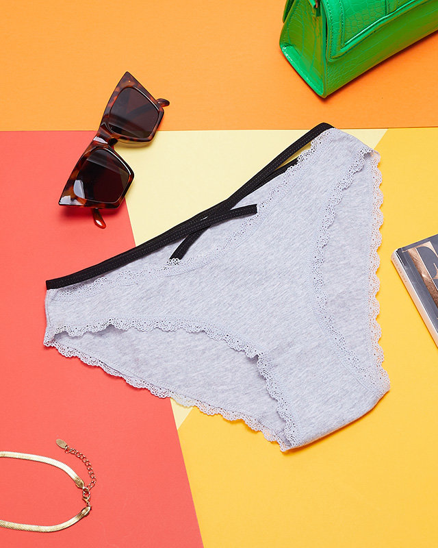 Šedé dámske nohavičky s čipkou a prúžkami - Spodná bielizeň