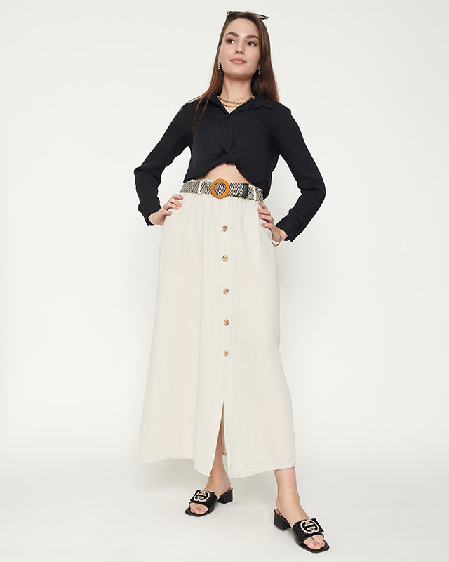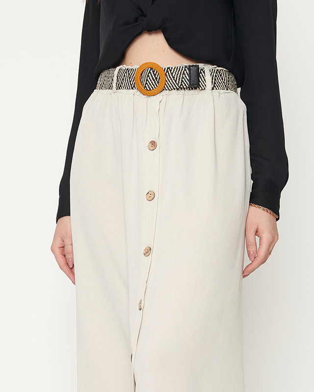 - Dámska midi sukňa z príjemného bavlneného materiálu. Elastická guma v páse a spletený opasok. Model na gombíky. POZNÁMKA: Presnosť merania (+/-) 1 cm.