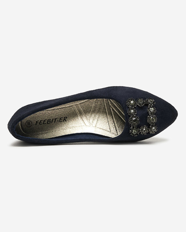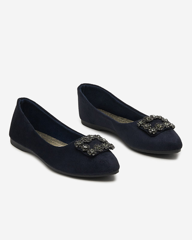 Námornícko modré dámske eko semišové baleríny s ornamentom Linselisa - Topánky