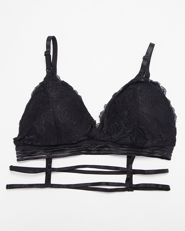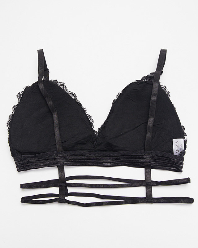 Čierna dámska podprsenka s čipkou a prúžkami - Spodná bielizeň