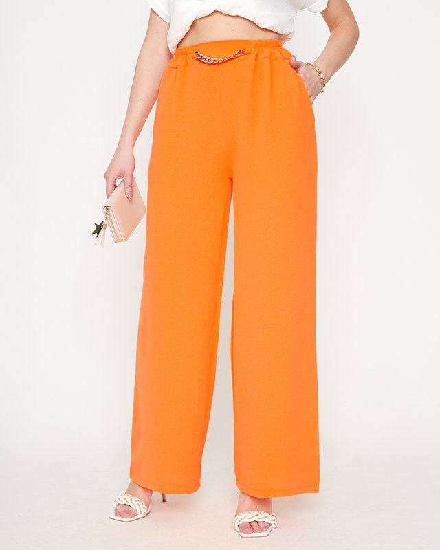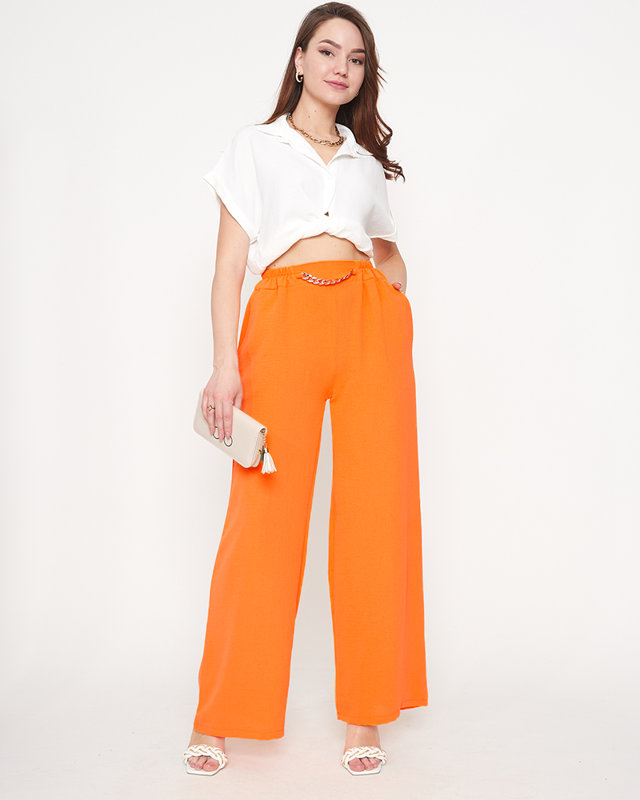 Oranžové dámske široké palazzo nohavice s retiazkou - Oblečenie