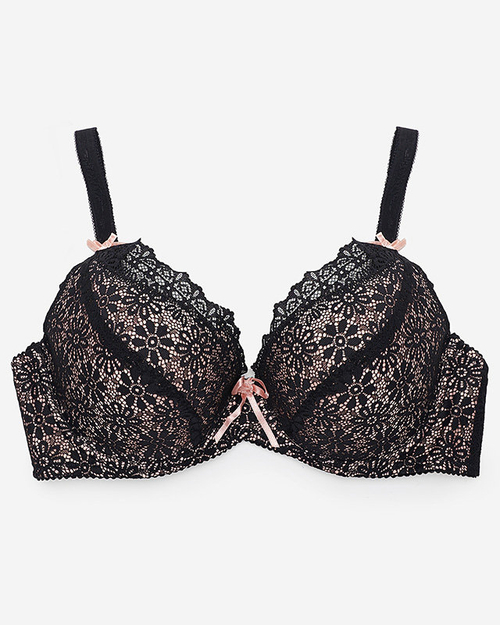 Čierno-ružová dámska čipkovaná podprsenka - Spodná bielizeň