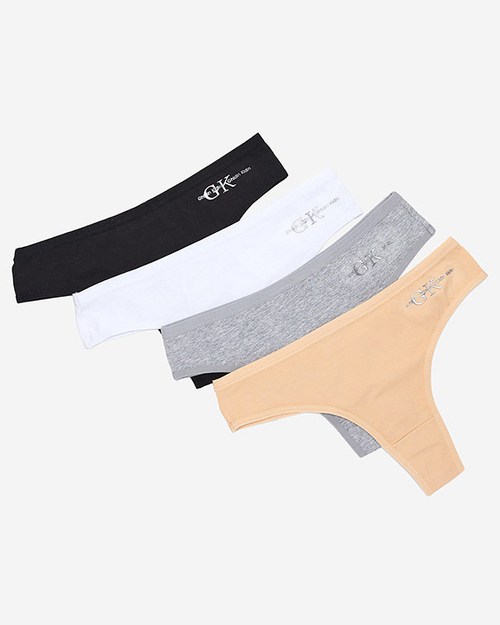 Jednofarebné dámske bavlnené tangá súprava 4 / bal - Spodná bielizeň