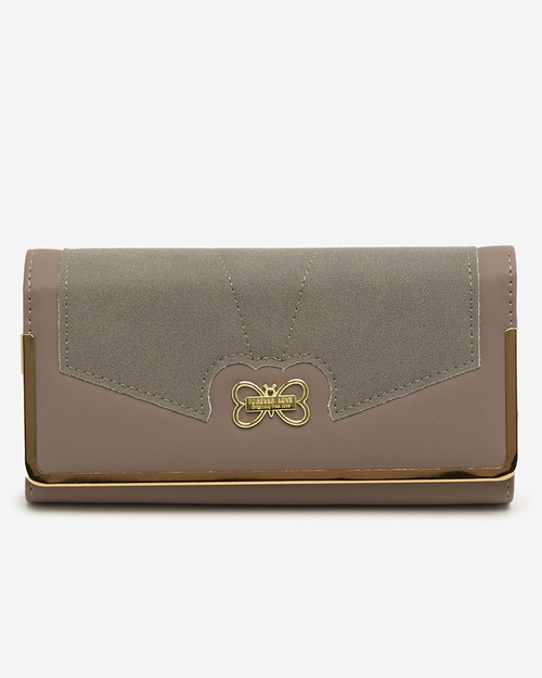 - Dámska koženková peňaženka s ozdobným motýľom vpredu. Výrobok sa zapína na gombík. Model má: - 3 priehradky, z toho 1 zapínanú na zips, - 8 vreciek na platobné karty alebo iné doklady.
