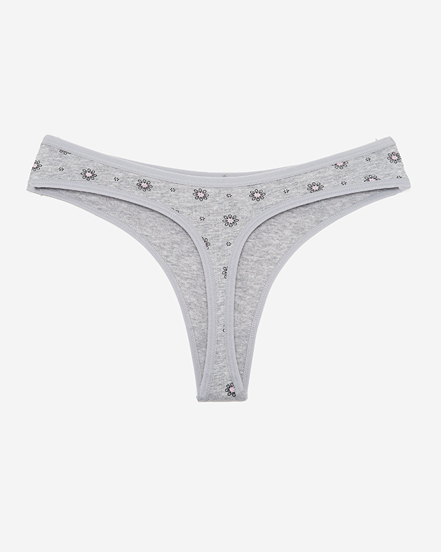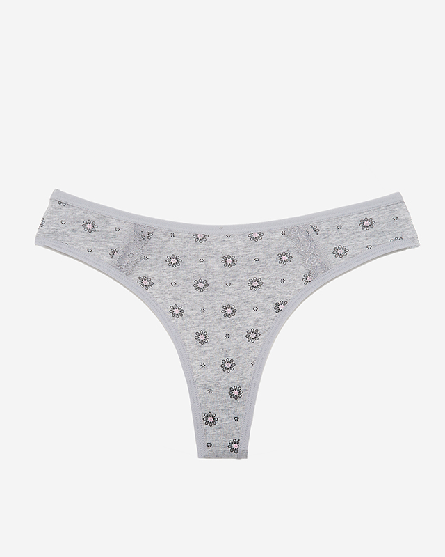 Sivé dámske bavlnené tangá s kvetmi - Spodná bielizeň