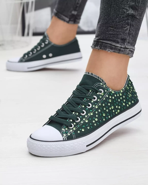 Dámske tenisky s tmavozelenými kubickými zirkónmi Amando - Obuv