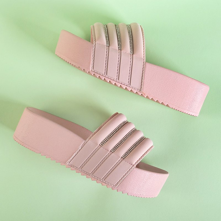 OUTLET Ružové dámske papuče na platforme s kubickými zirkónmi Rondi - Obuv