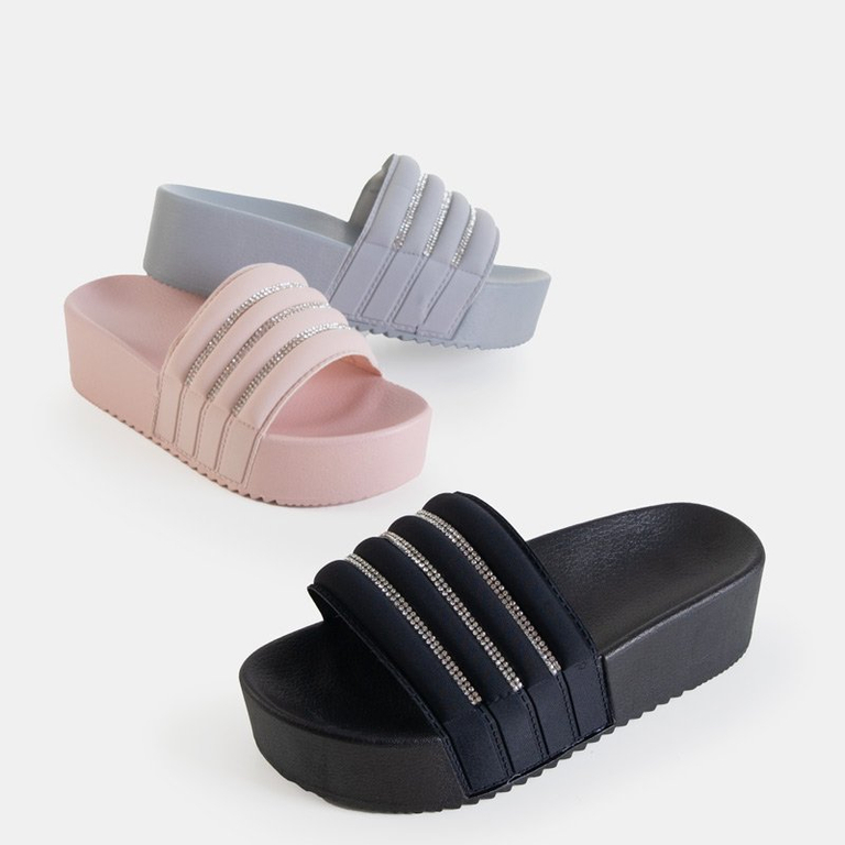 - Fantastické dámske papuče na gumenej platforme. Látkový prúžok zdobený kubickými zirkónmi a vložka je vyrobená z gumeného materiálu. Dokonale zdôraznia každý letný styling! Poznámka: výrobok má škrabance na materiáli.