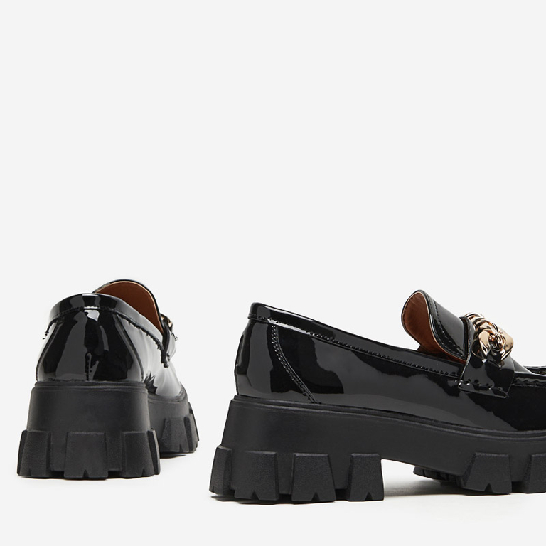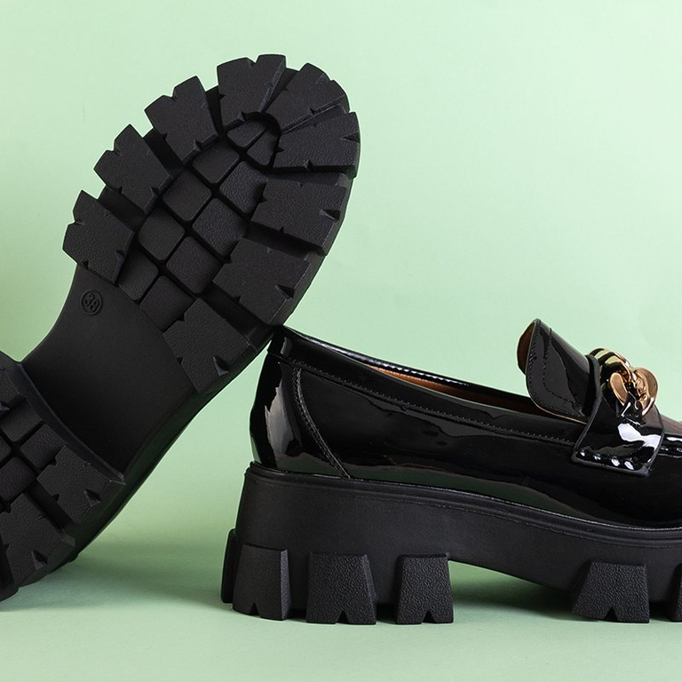 OUTLET Dámske čierne lakované slip on topánky s retiazkou Guinewra - Footwear