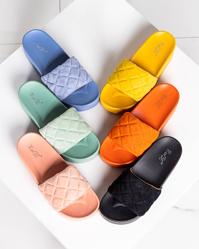- Štýlové dámske prešívané sandále ležérneho štýlu, na platforme. Remienok je vyrobený z ekologickej semišovej kože, vložka je z gumeného materiálu. POZNÁMKA: Model môže mať na materiáli stopy lepidla a mierne škrabance na podrážke/špičke.