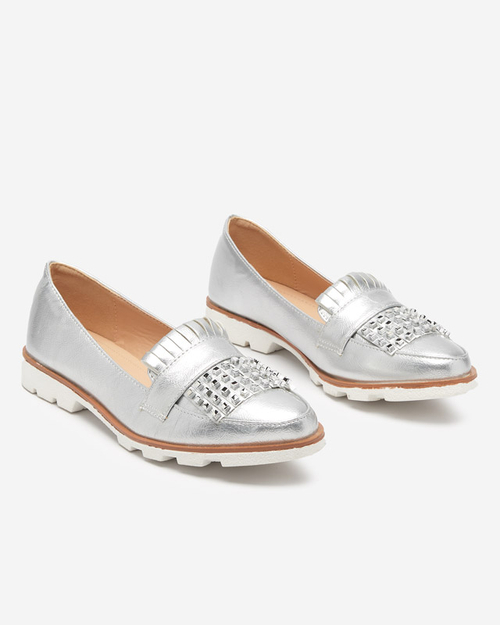 VÝSTUP Strieborne lakované mokasíny s tryskami Fanreso - Obuv