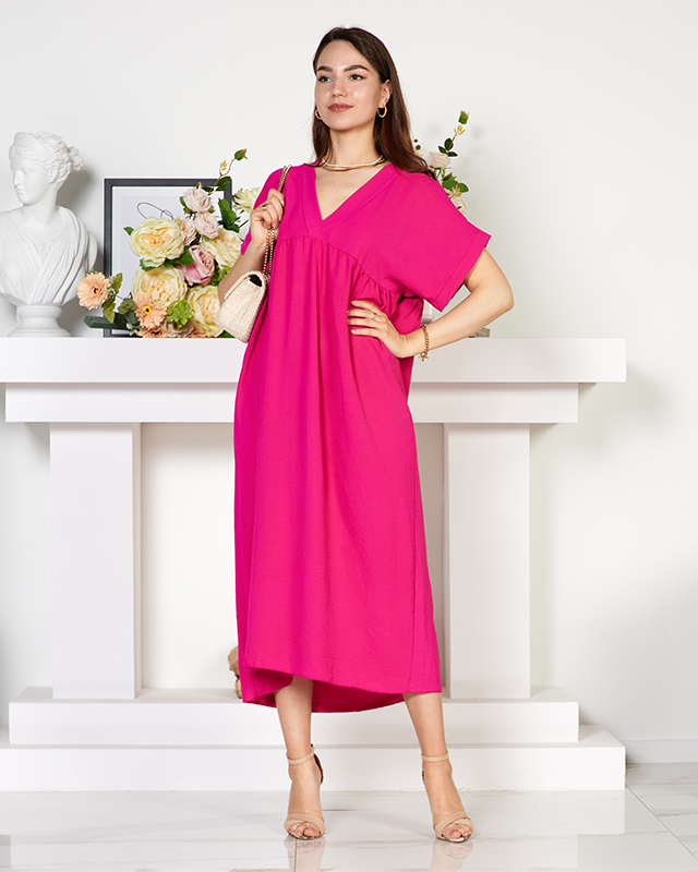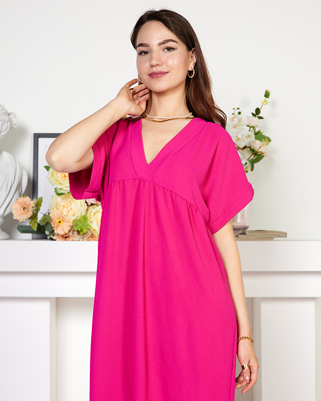 Dámske plážové fuchsiové šaty v strednej dĺžke - Oblečenie