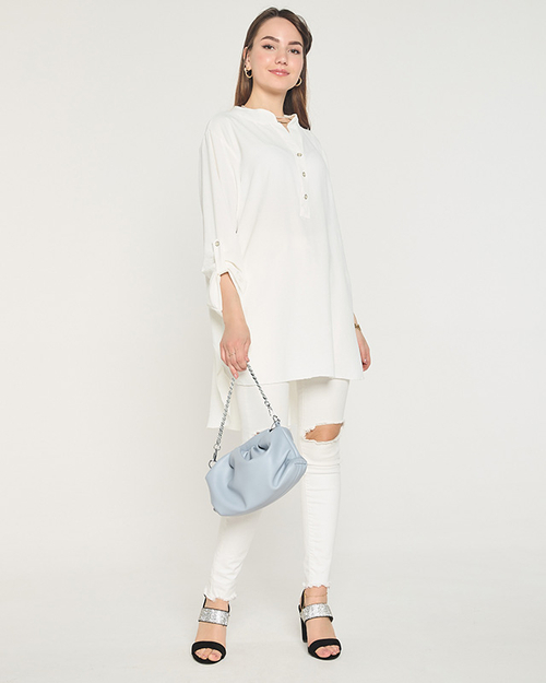 Dámske biele dlhé tričko na gombíky - Oblečenie