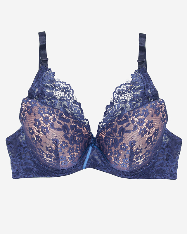 Ružová podprsenka s tmavomodrou čipkou - Spodná bielizeň