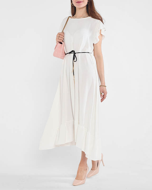 Dámske biele šaty s volánmi a zaväzovacím opaskom v páse - Oblečenie