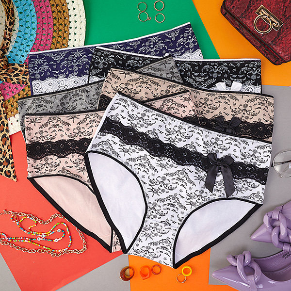 Set dámskych slipov s potlačou 6 / bal PLUS VEĽKOSŤ - Spodná bielizeň