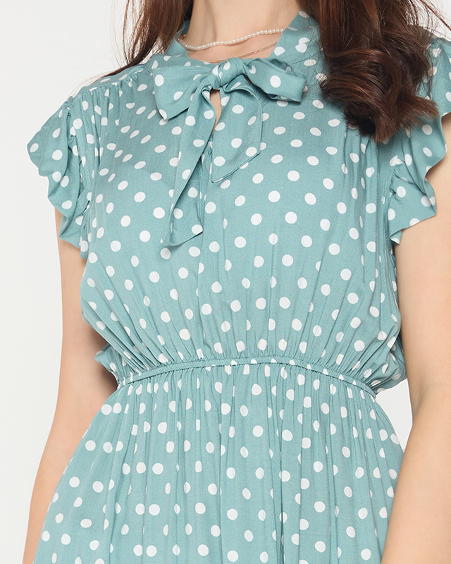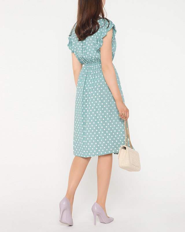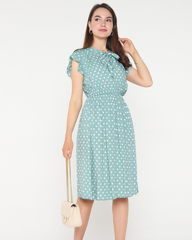 Mint dámske šaty s bodkovaným výstrihom na viazanie - Oblečenie