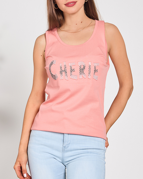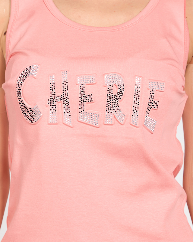 Koralový dámsky top s nápisom a kubickými zirkónmi - Oblečenie
