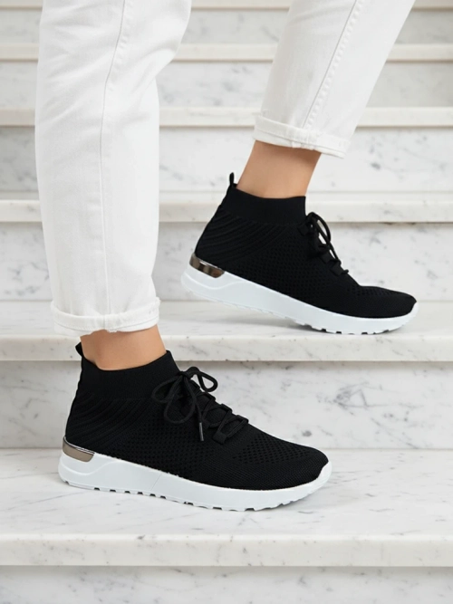 Naši športni copati Nero Elegante so idealna izbira za ženske, ki cenijo udobje in stil. Izdelani iz visokokakovostne tkanine, ti čevlji zagotavljajo odlično zračnost, zaradi česar so idealni za toplejše dni. Zahvaljujoč nizki peti z višino 2,5 cm so celo dolgi sprehodi prijetni. Ti copati so novi in na voljo v univerzalni črni barvi, ki se enostavno kombinira z različnimi stili.