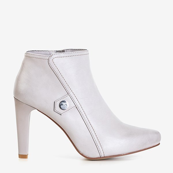 - Senzačné dámske čižmy na vysokom podpätku v svetlosivej farbe. Zvršok je vyrobený z ekologickej kože a stielka je potiahnutá látkou. Špička nosa robí nohy štíhlejšími. Poznámka: výrobok má škrabance na materiáli.
