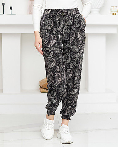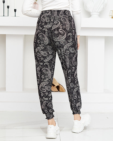 Dámske čiernobiele látkové nohavice s potlačou - Oblečenie